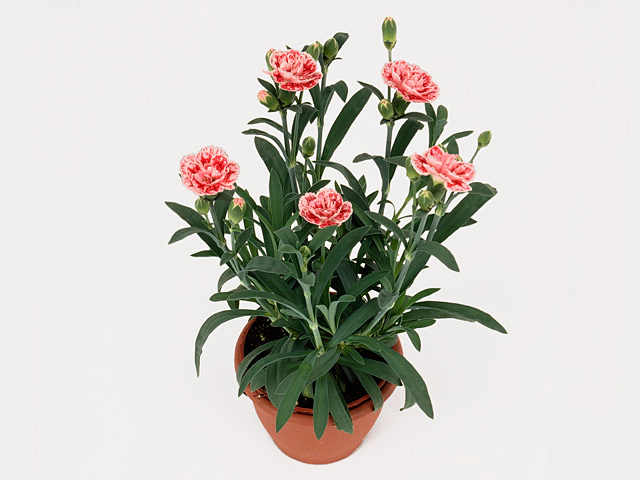 One of the key characteristics of Dianthus 'Sunflor Flamingo' is its stunning flower color. The petals range from a rich red to a dark red hue, marked by the color code 045A. This vibrant shade adds a bold and captivating element to any garden or floral arrangement.
