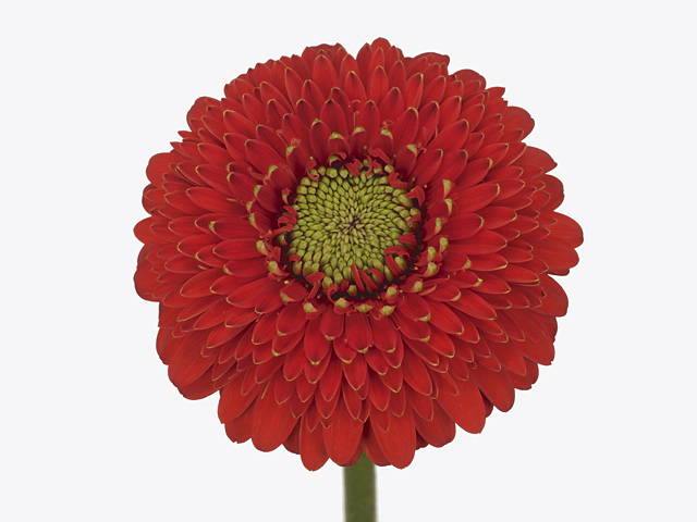 The Gerbera mini globose Gerponi Amore, also known as the Transvaal Daisy, is a stunning flower with a unique double (pleniflorous) bloom. Its vibrant red-light red-N030A coloring makes it stand out in any floral arrangement. The flower's inflorescence is in the form of a capitulum, giving it a distinct head-like appearance, while the overall shape is depressed globose.