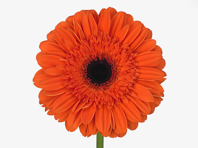 One of the features that sets the Gerbera 'Castle' apart is its unicolored distribution of the flower color. This means that the entire bloom is a consistent shade of orange-orange red, with no variation or gradients in color. This uniformity adds to the flower's visual appeal, creating a striking focal point in any floral arrangement.