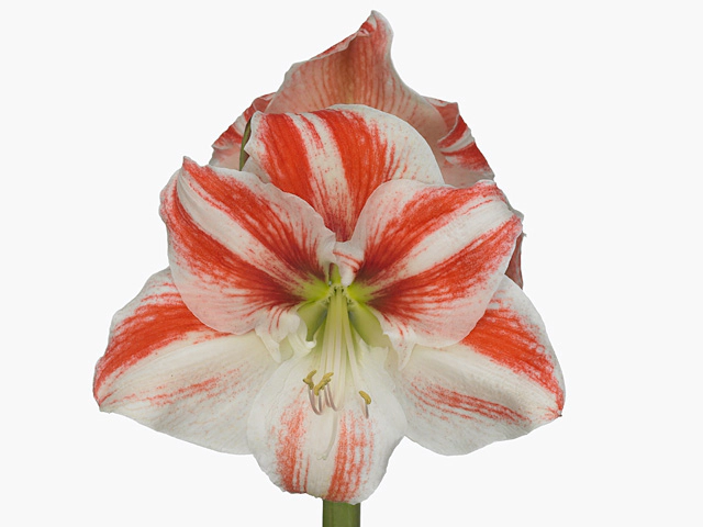 In conclusion, the Hippeastrum (Galaxy Group) 'Clown' is a remarkable Belladonna Lily or Amaryllis variety with its single flower type, white-white-999D and red-dark red-042A coloration, impressive flower diameter, bicolored leaf color and pattern, and multi-colored, bicolored, and feathered flower color distribution. Its presence in any garden or interior space adds a touch of elegance and beauty that is hard to ignore. With its unique characteristics, the 'Clown' definitely deserves a spot among your favorite flowers.