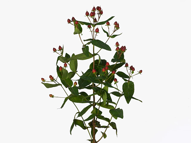 In conclusion, Hypericum x inodorum Go Mega-TUTSAN, also known as St. John's Wort, is a remarkable plant with a range of appealing qualities. From its globose-cone shaped berries that range in color from red to dark purple, to its elongated, ovate leaves that boast a deep green hue, this hybrid plant is sure to captivate the eyes of any observer. Its ability to thrive in both sunny and semi-shaded areas further adds to its attractiveness and versatility. Whether used as a focal point or as part of a mixed planting scheme, Hypericum x inodorum Go Mega-TUTSAN is sure to enhance any garden or landscape with its stunning features.