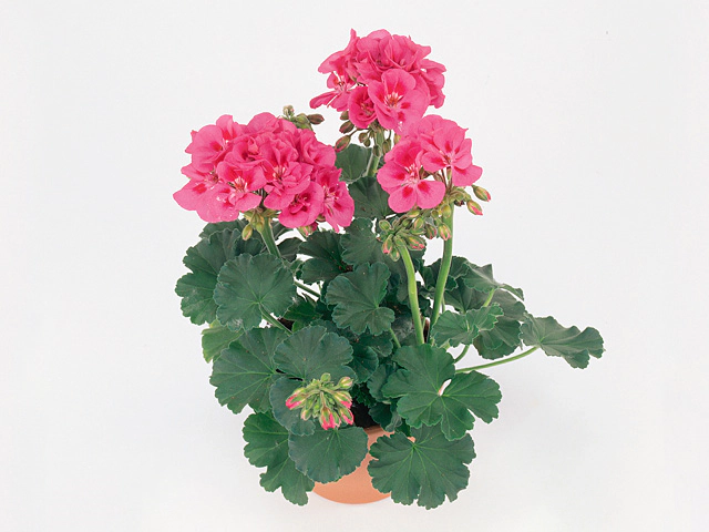 The Pelargonium Toscana Sil Baldo, also known as the Geranium or Pelargonium, is a beautiful flowering plant that belongs to the Zonale group. This particular variety showcases single or slightly doubled flowers with a diameter of 4 - 4.5 cm. The flowers exhibit a stunning color range from pink to medium purple to red, specifically classified as N066B.