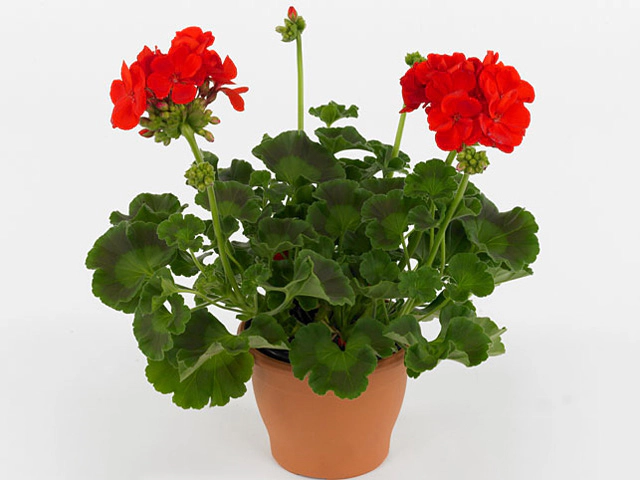 In terms of size, the Elara typically reaches a height of 10 to 20 cm, making it a compact plant that can easily fit into smaller spaces. The leaves of this pelargonium are also on the smaller side, measuring between 5 and 7.5 cm in length. The main leaf color is a rich, dark green, which provides a lovely contrast to the bright red flowers.