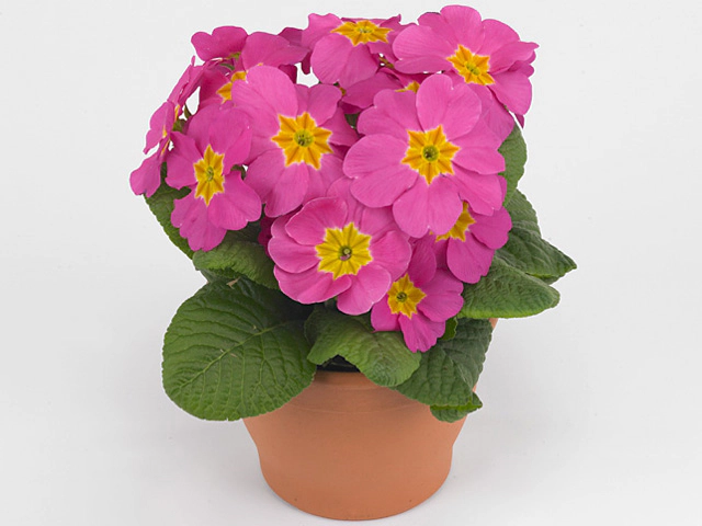The Primula 'Bonneli Rose' variety offers a color palette that complements the vibrant pink blooms with secondary yellow hues. These shades of medium yellow, specifically classified as yellow-009A, add a delightful contrast and visual interest to the overall appearance of the plant.