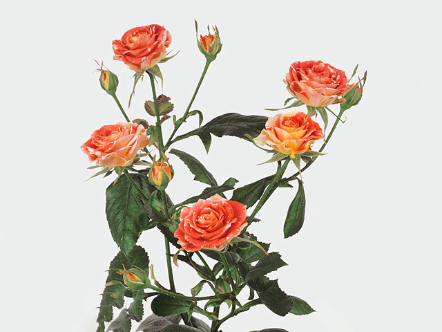 Measuring between 4.5 and 5 centimeters in diameter, the blossoms of the Rosa Spray Orange Flash~ROSE are neither too large nor too small, making them an ideal size for a variety of floral arrangements. Whether you choose to showcase these roses in a vase or use them to adorn a special event, their size is just right.