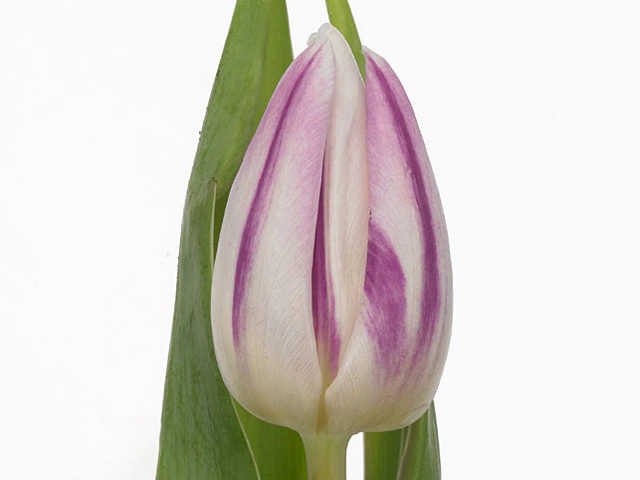 The beauty of the 'Flaming Flag' tulip lies not only in its colors but also in its color distribution. The petals of this particular tulip variety are feathered, meaning that the colors blend seamlessly together, giving the flower an ethereal and unique appearance. The purple-medium violet hue dominates the lower part of the petals, while the upper part is adorned with pristine white petals.