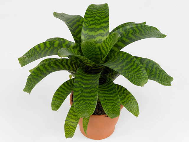 The general shape of the Vriesea hieroglyphica's leaf is lanceolate, giving it an elegant and elongated appearance. It reaches a height of 10-20 cm, making it a suitable choice for smaller spaces or as part of a larger display with other foliage plants.