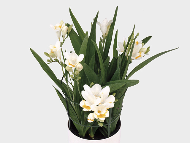 Фрезия "Suzy" - это очень красивый и ароматный сорт фрезии. Он отличается своими многоцветными соцветиями, состоящими из белых цветков с легкими оттенками. Цветки обладают неповторимым ароматом, который отличается от стандартного запаха фрезии.