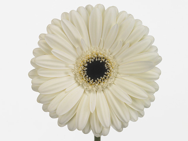 Гербера крупноцветковая "Iceberg" – это растение с прекрасными белыми цветками и крупным диаметром в 10-11 см. Ее цветки имеют тип "Single", что означает, что они состоят из одного ряда лепестков.