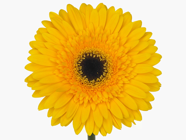 Цветковая окраска герберы крупноцветковой «Antonius» однородная, что добавляет ей особого очарования и привлекательности. Желтый-оранжевый оттенок создает атмосферу тепла и уюта, что делает этот сорт идеальным для использования в дизайне садов и цветников.