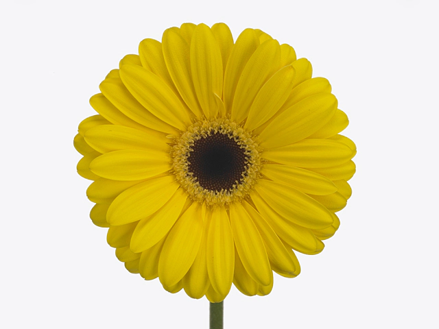 Гербера крупноцветковая "Chapeau" - это удивительное растение с крупными, яркими цветками. Ее цветы имеют одиночную структуру и окрашены в средне-желтый оттенок. Диаметр цветка составляет от 9,5 до 10 сантиметров.