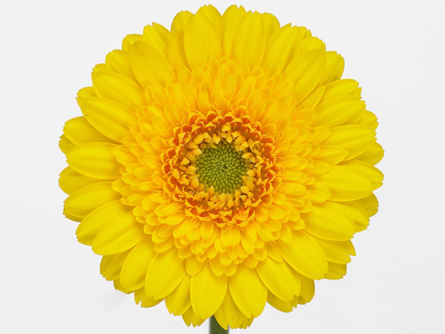 Как и у других гербер, инфлоресценция "Sirocco" представляет собой капитулум, или цветковую головку. Цветки этого сорта имеют однотонное распределение цвета, но на некоторых из них также можно заметить небольшие вкрапления вторичного цвета, который можно описать как средне-оранжевый.