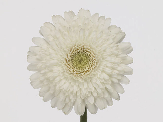 Гербера мини "Lasina" - это вид красивого и нежного растения с полу-двойными белыми цветками диаметром от 7,5 до 8 см. Цветение данного растения представлено в виде капитуля (головки), что придает ему особую изящность и привлекательность. Одной из особенностей сорта является одноцветность распределения цветков, что создает впечатление единой и очень нежной текстуры.