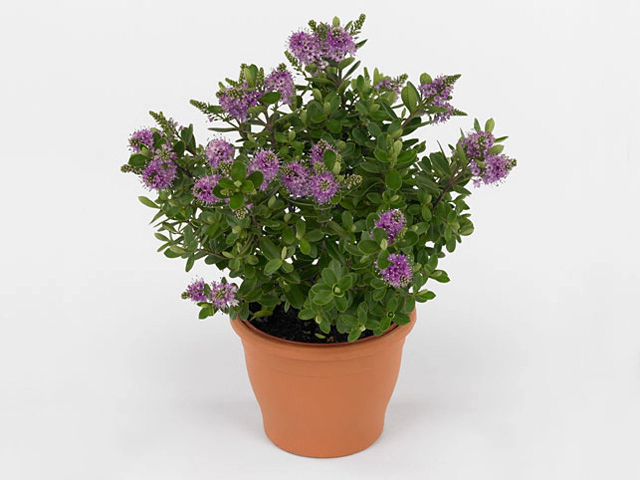 Цветки хебе "Hebedonna Diana" имеют нежную пурпурно-фиолетовую окраску, которая делает их особенно привлекательными. Они собраны в соцветия-тиволи, которые имеют длину менее 5 см и диаметр от 2 до 3 см. Цветение этого растения более чем обильное, что делает его весьма декоративным на протяжении всего сезона.