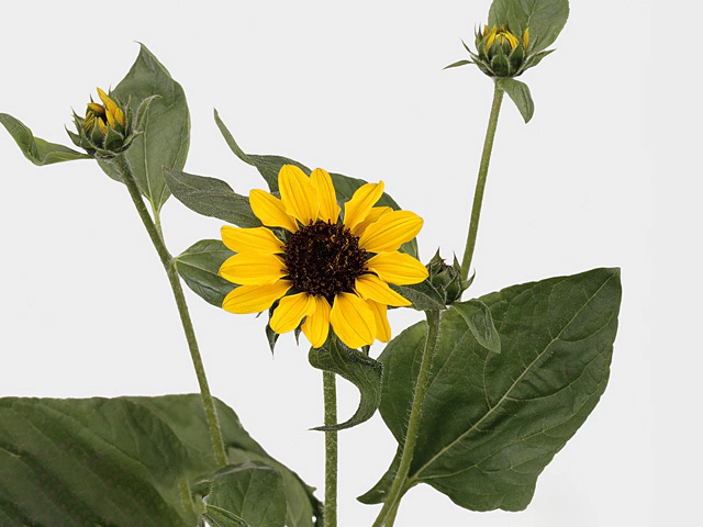 Однолетний подсолнечник "Sonja" - это красивое растение с удивительными жёлтыми или оранжево-жёлтыми цветами, которые находятся в центре капитулума (головки). Листья имеют овальную (яйцевидную) форму, заостренные и зубчатые по краю. У растения нет запаха. Рост этого подсолнечника прямостоячий.