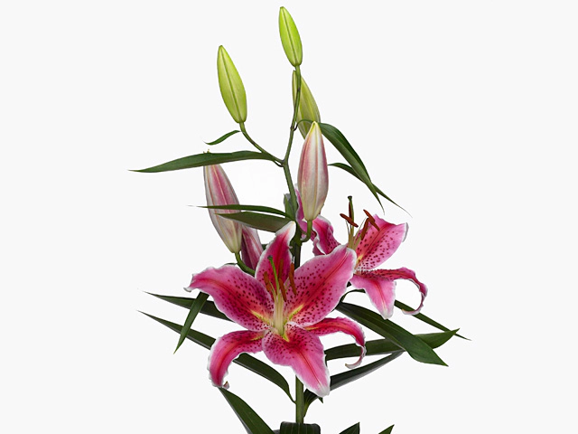 Лилия восточная "Mero Star" - это удивительное растение с непревзойденной красотой. Ее цветки одиночные, окрашены в розово-средне-пурпурно-красный оттенок, что делает их по-настоящему впечатляющими. Диаметр цветка составляет от 15 до 20 см, что делает этот вид лилии одним из наиболее крупных.
