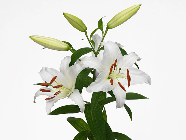 Лилия восточная "Siberia" - это прекрасное растение, обладающее изящной красотой и неповторимым ароматом. Ее белоснежные цветы диаметром от 13 до 14 см привлекают внимание своей нежностью и изысканностью. Они имеют равномерное белоснежное окрас, что делает этот сорт особенно привлекательным.