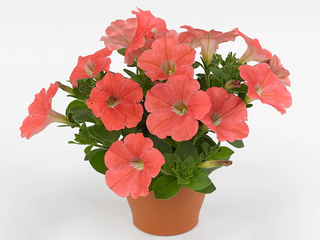 Петуния "Bonnie Salmon" - это прекрасное растение, которое поражает своими нежными цветками и обильным цветением. Этот сорт обладает великолепной разнообразной формой цветков, превосходной стойкостью к дождю и ветру. Легко выращивается и подходит для контейнерного и горшечного выращивания, для цветников и рабаток.
