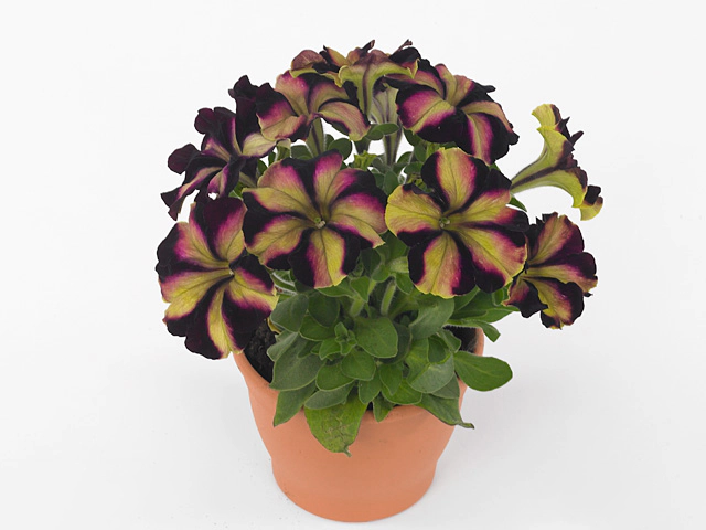 Цветки этой петунии имеют одиночную форму и диаметр от 5,5 до 6 см. Они сочетают в себе фиолетовый и темно-фиолетовый цвет с желтыми вкраплениями. Вторичный цвет цветка - средне-пурпурный.