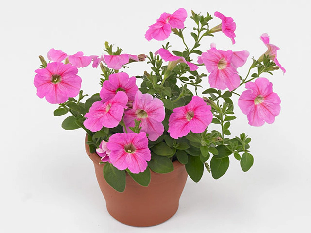 Петуния "Sanguna Pink Stripe" - это прекрасное растение с овальными листьями и крупными цветками, имеющими диаметр 6,5 - 7 см. Они одиночные, средней фиолетово-розовой окраски, что создает очень привлекательный вид. Растение может достигать высоты от 10 до 20 см, что делает его идеальным для посадки в горшки, балконы и клумбы.