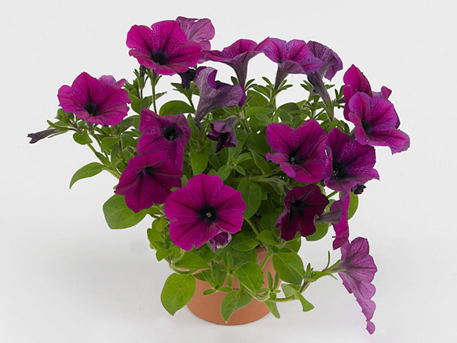 Петуния "Potunia Deep Purple" - это чудесное растение, которое поразит вас своей красотой и изысканным ароматом. Это одиночные цветки, диаметр которых составляет от 6 до 6,5 см, имеют темно-пурпурный оттенок с нежными фиолетовыми прожилками, что делает их по-настоящему уникальными и элегантными.