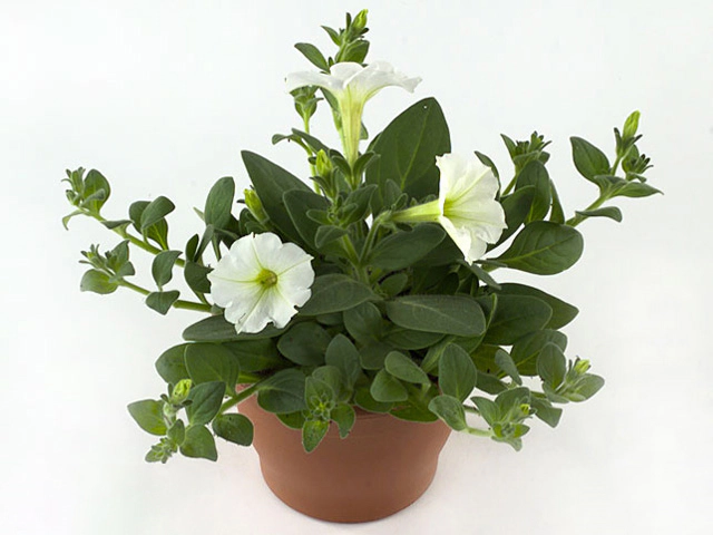 Петуния "Ramblin White" – это красивое и изысканное растение, которое отличается множеством прекрасных качеств. Ее цветы одиночные, белоснежные, с диаметром 5,5 - 6 см. Цвет листьев темно-зеленый, их общая форма овальная. Листья достигают размеров 7,5 - 10 см.