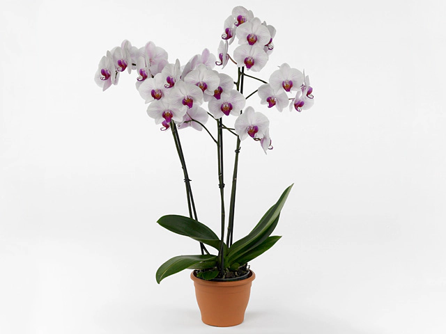 Фаленопсис "Anthura Denver" - это эпифитный вид орхидей, который привлекает внимание своими большими белыми цветками с фиолетовым оттенком и яркой желтой деталью на губе. Эта орхидея имеет прямые, узкие листья темно-зеленого цвета, что создает контраст с белыми цветками. Фаленопсис "Anthura Denver" достигает высоты 50-60 см и обладает обильным цветением, при этом размер цветка составляет 7,5 - 8 см в диаметре. Инфлоресценция имеет длину 20-25 см, что придает этому виду орхидей более внушительный вид.