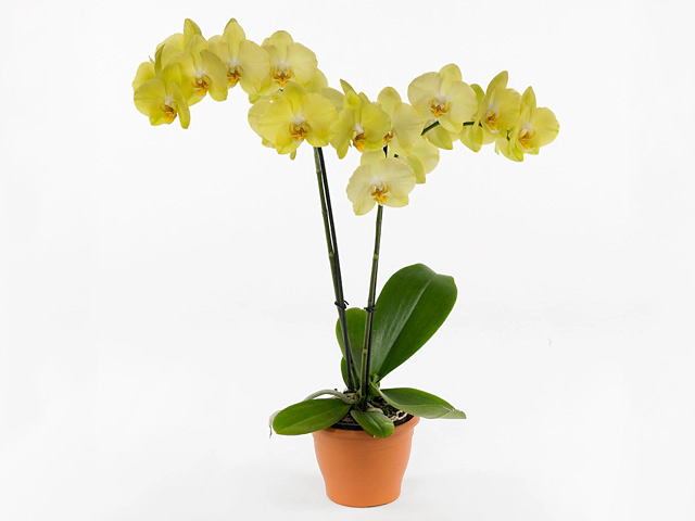 Фаленопсис "Anthura Ferrara" - это прекрасный представитель орхидей, обладающий изящной внешностью и яркими окрасками. Его цветы имеют диаметр от 8,5 до 9 см и окрашены в желтый и светло-желтый цвета, создавая неповторимый вид. Цветки имеют многоцветное распределение окраски, что делает их по-настоящему уникальными.