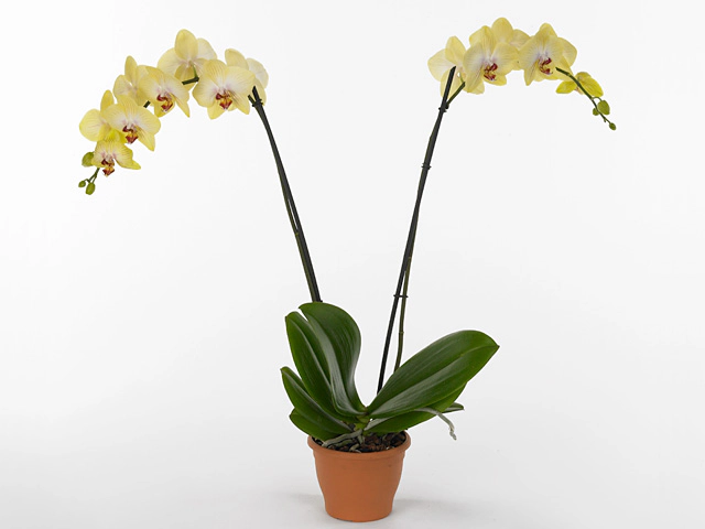 Фаленопсис "Floriclone Sun Passat" – это очаровательное растение с крупными, прекрасно окрашенными цветками. Цветки этого сорта представляют собой желто-светло-желтый оттенок, который создает яркий контраст с темно-зелеными листьями. Диаметр цветка составляет 8,5 - 9 см, а высота растения – от 60 до 70 см.