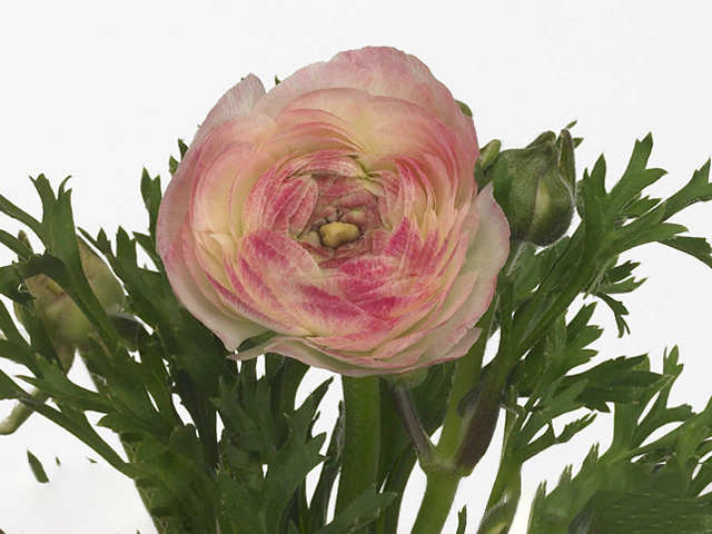 Листья растения имеют зазубренный край и делятся на доли. Они имеют средне-зеленый цвет, что отлично сочетается с яркими цветками. Ранункулюсы "Elegance White Sfumato" предпочитают солнечные или полутенистые места и требуют влажности почвы.
