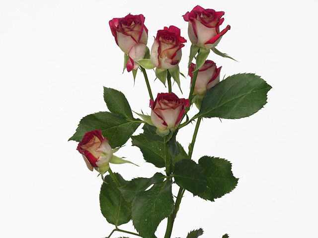Роза спрей "Rubyella" - это уникальный сорт роз, который привлекает внимание своим необычным сочетанием цветов и компактным размером цветка. Пурпурные лепестки средней насыщенности в сочетании с белым создают эффектный контраст и делают этот сорт особенно привлекательным.