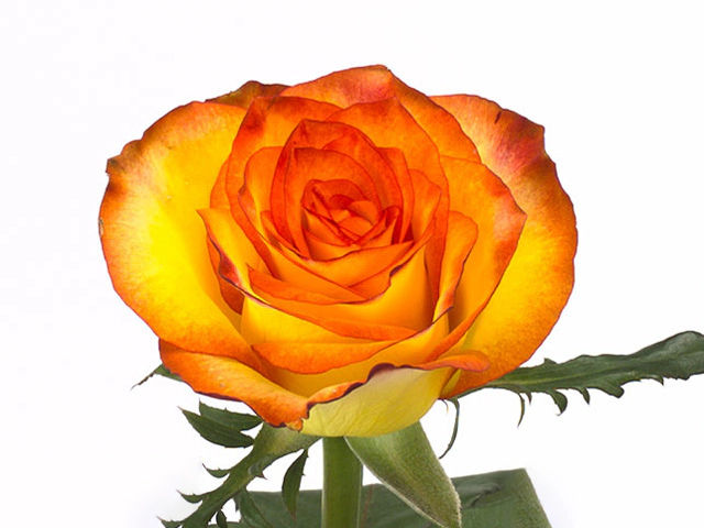 Цветы данного сорта розы обладают диаметром от 9 до 9,5 см и имеют ярко-желтый цвет с оранжево-красным и средне-желтым оттенками. Они выглядят очень эффектно и привлекают внимание своей необычной окраской. Цветы располагаются поодиночке, что делает их еще более выразительными.