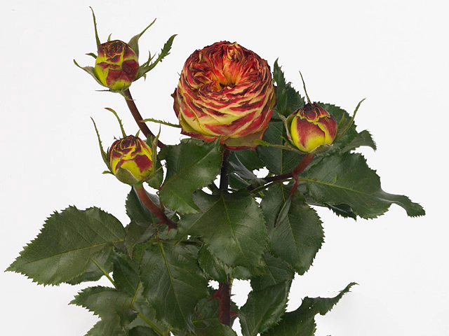 Цвет лепестков этой розы является ярким красным с желтой отдачей, что создает эффект шикарного бицикла. Диаметр цветка составляет от 6,5 до 7 см, что делает его достаточно крупным и заметным. Цветение розы происходит в виде соцветия, что придает ей особую изящность и воздушность.