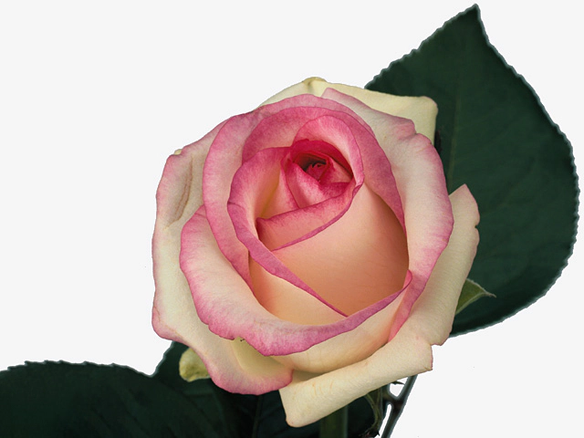 Цветы розы "Dolce Vita+" имеют необычную расцветку - белый цвет с розовыми краями. Такая двухцветность делает их особенно привлекательными и привносит в сад яркие краски. Размер цветка составляет 8-8,5 см, что делает его довольно крупным и заметным.
