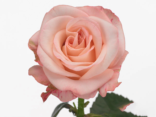 Листья данной розы имеют темно-зеленую основную окраску, что создает контраст и выгодно подчеркивает красоту цветка. Распределение цвета на цветке однородное, с небольшими включениями других оттенков, что делает его более гармоничным и привлекательным.