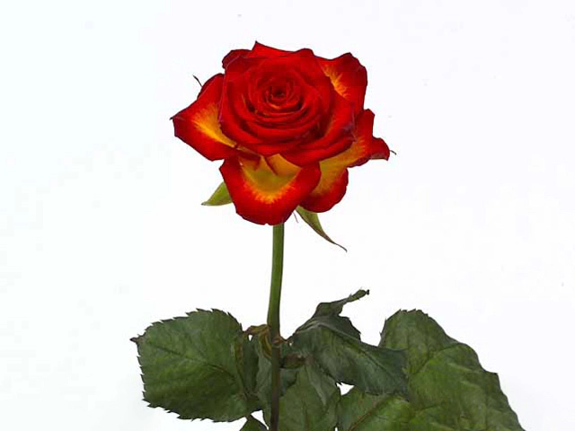 Роза крупноцветковая "High Society" - это прекрасный сорт роз, который обладает рядом характеристик, делающих его особенным и уникальным. Листья этого растения имеют острые кончики и зазубренные края, их общая форма треугольная, размер составляет от 15 до 20 см, основной цвет - темно-зеленый, без узора.