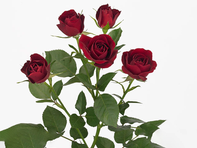 Бутоны цветка располагаются на цветущих кистях, что добавляет изящества и изысканности цветению. Листья растения имеют темно-зеленую основную окраску, что создает контрастный фон для красивых цветков. Роза спрей "Rubicon" имеет одноцветное распределение окраски цветков, а их насыщенный красный оттенок придает растению выразительность и живость.