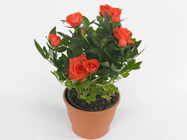 Листья этой розы имеют темно-зеленый цвет, что создает красивый контраст с яркими оранжево-красными цветами. Цветковая расцветка у растения однородная, что придает ему еще больше изыска и красоты.