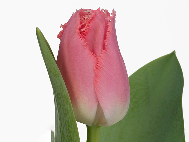 "Тюльпан бахромчатый "Crispy Pinky" отличается от других сортов своим одиночным цветком размером от 4,5 до 5 см. Цветок этого тюльпана имеет необычное биколорное распределение цвета - от розового к средне-голубому розовому с оттенками белого. Цвет окаймляющей бахромы также белый.
