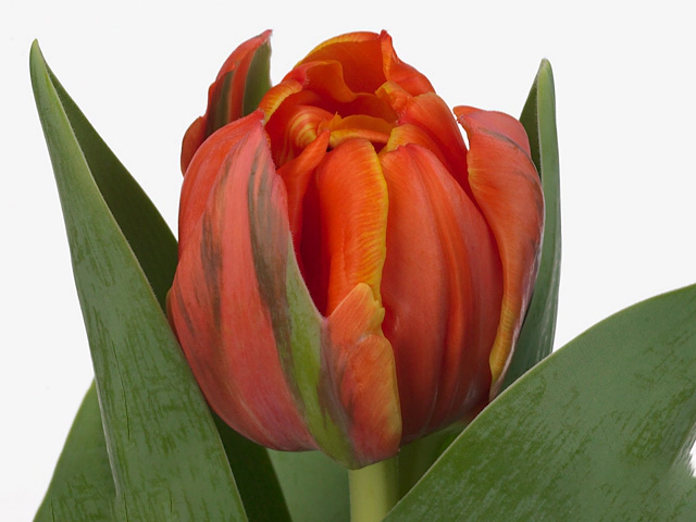 Тюльпан махровый поздний "Queensday" - это великолепное растение, которое поражает своей красотой и изысканностью. Его привлекательность заключается в довольно крупных махровых цветках диаметром от 5,5 до 6 см, которые имеют оранжево-красный цвет с неповторимым переливом цветов. Помимо основного цвета, можно также наблюдать зеленовато-розовые и ярко-желтые оттенки на краях лепестков.