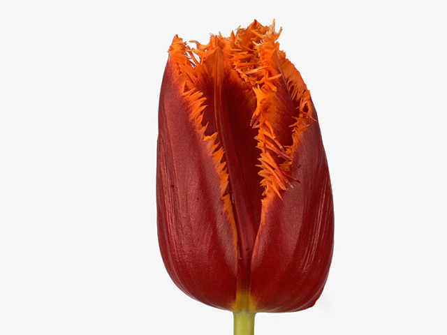 Тюльпан бахромчатый "Fabio" - это удивительный сорт тюльпанов, которые поражают своей красотой и изысканностью. Они относятся к одиночным цветкам, что означает, что у каждого цветка только один ряд лепестков. Цветок тюльпана "Fabio" имеет насыщенный красно-темно-пурпурный цвет с оранжевым оттенком на краю лепестков. Такое сочетание цветов делает их по-настоящему уникальными среди других тюльпанов.