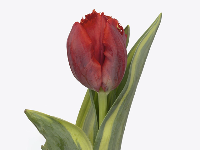 Тюльпан бахромчатый "Arma Design" - это непревзойденное растение, которое поражает своей красотой и изяществом. Его цветы одиночные, с красно-темно-красным оттенком, что придает им особую загадочность и привлекательность. Листья тюльпана имеют основной зелено-серый цвет, а их края украшены ярко-желтым оттенком, создавая удивительный контраст и добавляя дополнительную привлекательность этому растению.