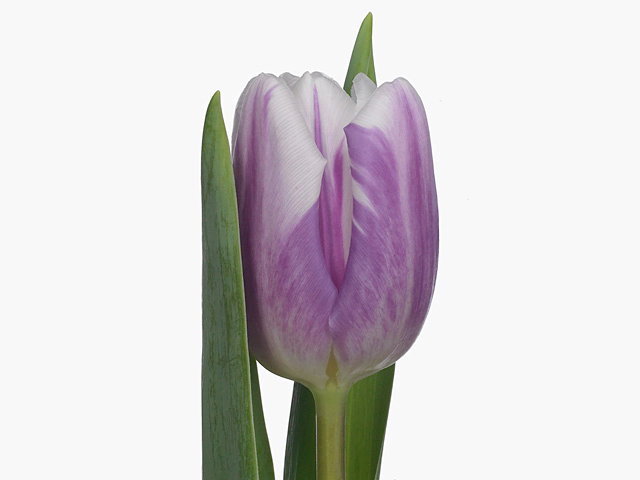Тюльпан Триумф "Striped Flag" внешне выглядит очень изящно и нежно благодаря переходу цвета от темного пурпурно-средневиолетового к чисто-белому, что создает фееричный и воздушный образ. Цветочный стебель этого сорта украшен насыщенной фиолетовой перистостью, придающей цветку еще больше очарования.
