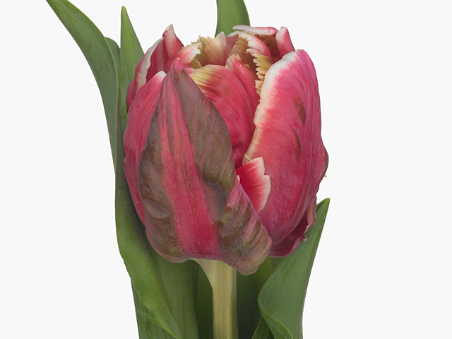 Описание цветка: "Birdie" относится к категории двойных цветков, что означает, что он имеет множество лепестков, создавая эффект пышности и обильности. Цветок имеет красно-темно-фиолетовую окраску, придающую ему особую загадочность и привлекательность. Однако, что делает "Birdie" по-настоящему уникальным, так это его перьевидная окраска. Лепестки обладают маргинальной расцветкой, а также мультиколоритным оттенком. К такому колориту "присоединяются" белый и желтый цвета, что создает потрясающий контраст и добавляет дополнительного очарования этому тюльпану.