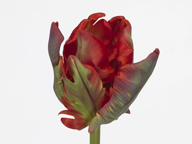 Цветок тюльпана "Rococo" имеет красно-светло-красный оттенок, который создает ощущение теплоты и яркости. Инфлоресценция состоит из одиночного цветка, в котором представлено множество оттенков, создающих впечатление перышек. Дополнительные цвета цветка включают в себя красно-средне-бургундский пурпур, что добавляет ещё больше интереса и разнообразия рисунку цветка.